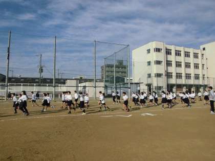今日から持久走タイムが始まりました。4年生・5年生・6年生が走りました。