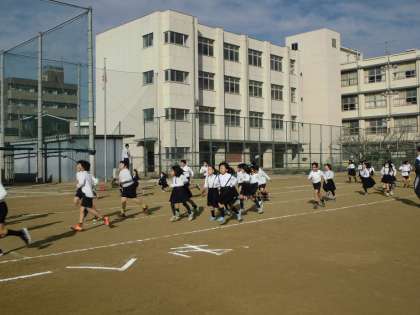 中学年は4分間、高学年は6分間、自分のペースで走りました。