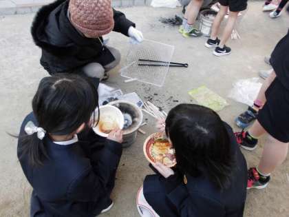 地域の方に来ていただき、加美地区の昔の様子を聞いた後、七輪体験をしました。