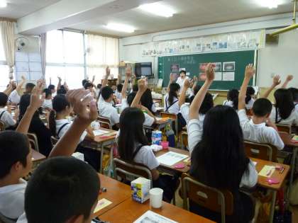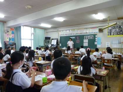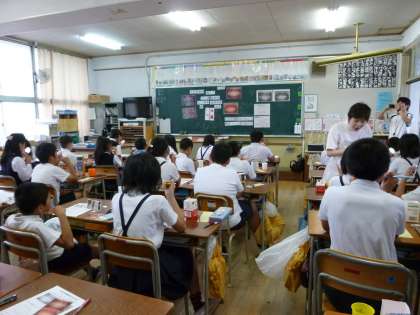 学校に歯科衛生士さんを招いて「歯と口の健康教室」(6年生対象)がありました。人間の歯周病の状態や原因を学び、健康度チェックをし、生活習慣や歯磨きについて実行しようと思うことを書いてまとめました。