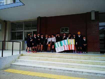 今週のあいさつ週間は、6年1組です。元気にあいさつしています。
