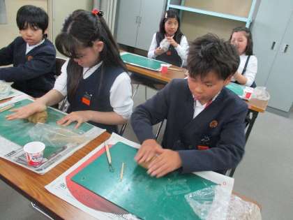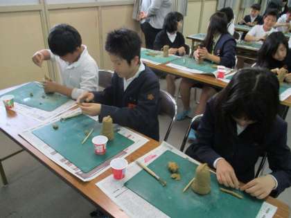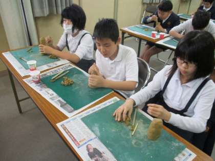 埴輪の話を聞いて、思い思いの埴輪を創りました。