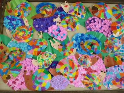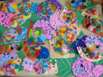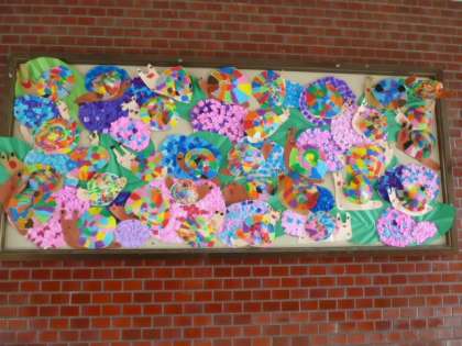正門の掲示板には、1年生の作った可愛い「かたつむり」と紫陽花が・・・