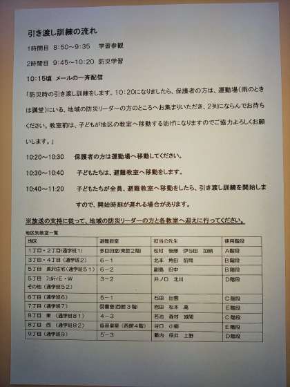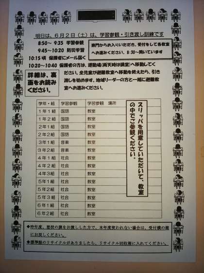 明日、6月2日(土)は、学習参観・引き渡し訓練です。