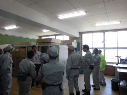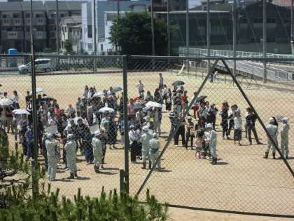 防災学習の後、地域の防災リーダーの方と保護者とによる引き渡し訓練を行いました。