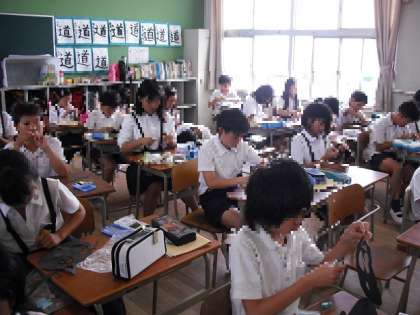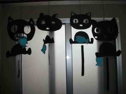 「玉結び」と「玉留め」は、なかなか難しいですが、かわいい猫の絵を使って、楽しそうに練習をしていました。作品もなかなかのものです。