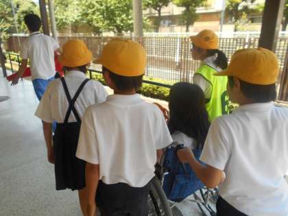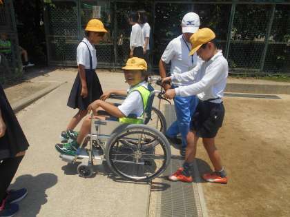 次に、「友だちを乗せてみよう」の介助体験をしました。