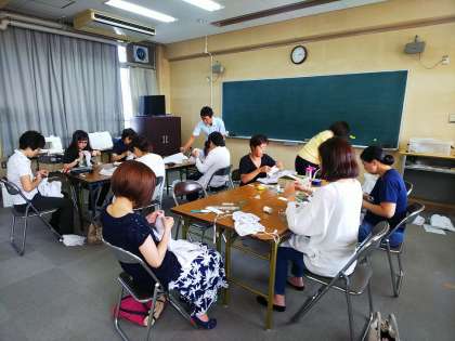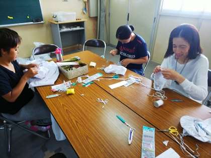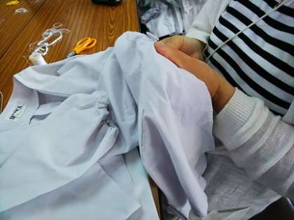 PTA保健給食委員会の方による給食エプロン修理がありました。