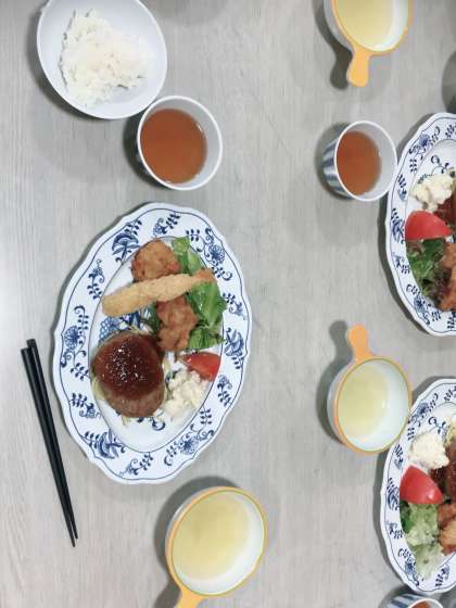 夕食は、ハンバーグです。