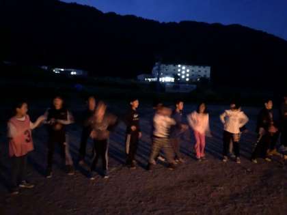 キャンプファイヤーです。辺りも暗くなり・・・