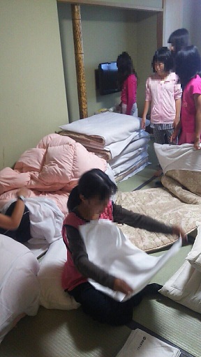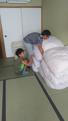 朝の部屋の様子です。布団の片づけ2日目、少し慣れたかな?