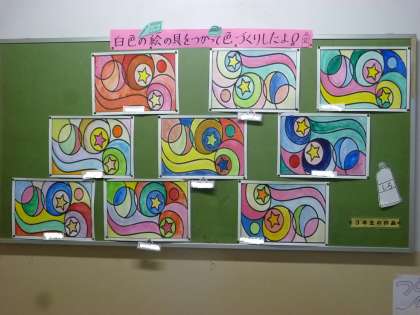 「白をつかって」、きれいな色彩のもようができました。
