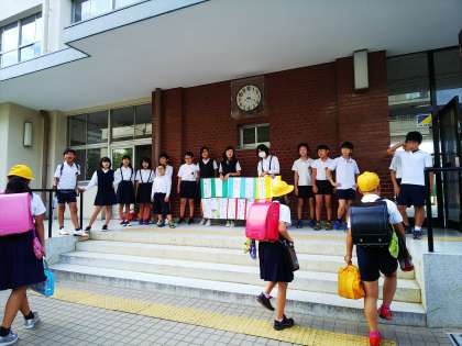 今週のあいさつ週間は、6年2組です。元気な声であいさつをしています。