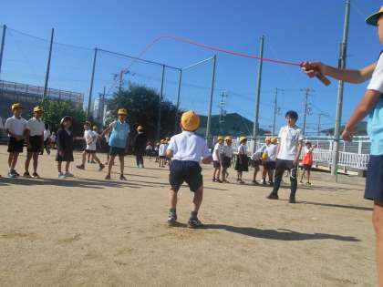 久しぶりに良い天気に恵まれ、運動場で児童集会を行いました。今日は、たてわり班で大縄跳びです。優しい笑顔で見守る6年生が素敵でした!