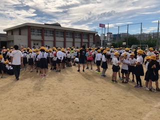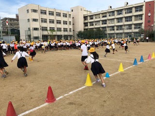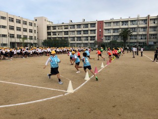 今週の児童集会は、ボール運びリレーでした。たてわり班で、1年生から6年生まで協力して走りました。