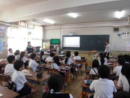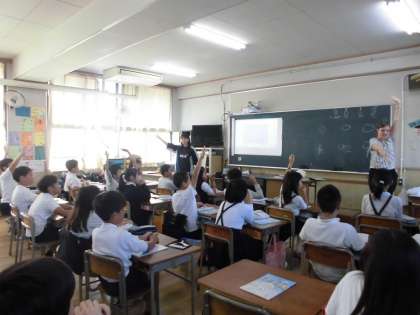 3年生も4年生もネイティブな先生との英語学習ははじめてです。楽しそうに取り組んでいました。