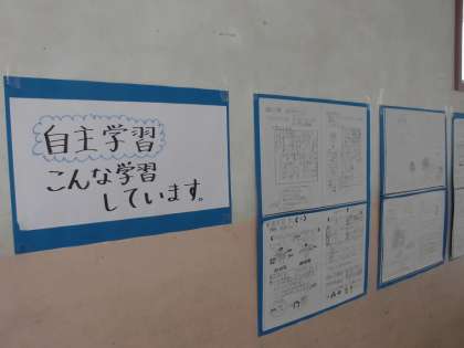 家庭学習で取り組んだ内容を、掲示しています。こんな学習の仕方もあるんだなと参考にしているようです。