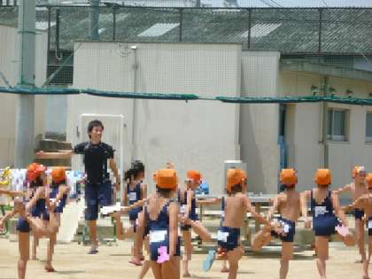 プールの準備運動がとっても可愛いので、思わず写真を撮りました。