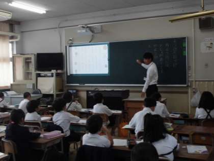 今日は、6年1組と1年1組の実習生が研究授業をしました。