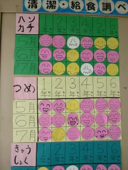 また、清潔・給食週間の掲示にも、7月の結果が追加されました。