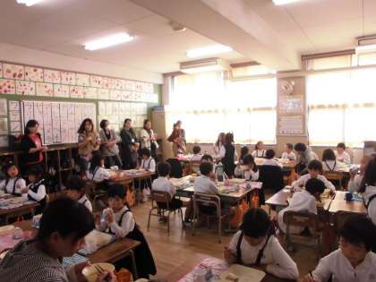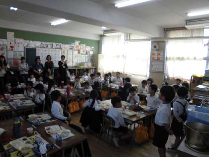 1年生の給食参観とPTAの試食会がありました。