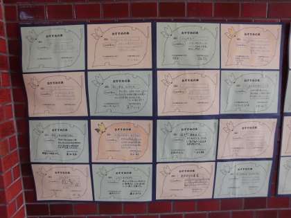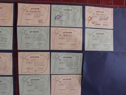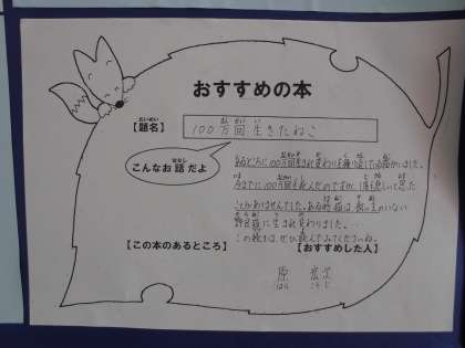 加美北小学校では、10月31日から11月14日を読書週間として、いろいろな取り組みをしています。玄関には、先生たちのおすすめの本が紹介されています。