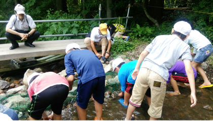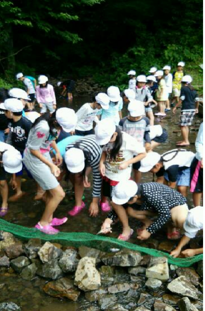 魚つかみ、友だとと声をかけあって、つかまえることも・・・