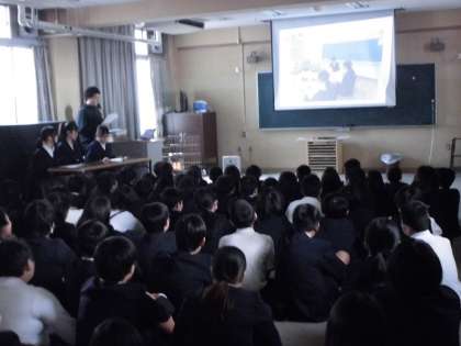 加美中学校の生徒会のみなさんが、中学校の学校生活について6年生に説明会をしました。