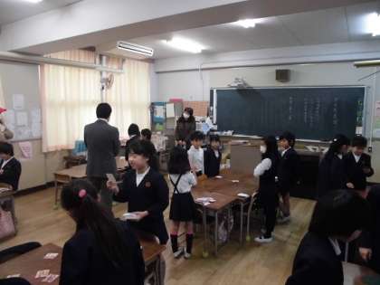 五色百人一首と食べ物カルタ、ぐりとぐらカルタなどをしました。