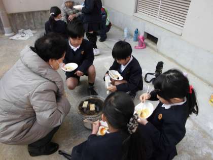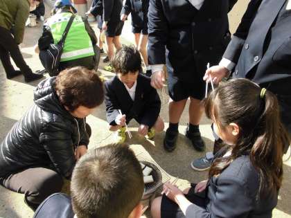 地域の方に来ていただいて、加美北小学校周辺の昔の様子を聞きました。