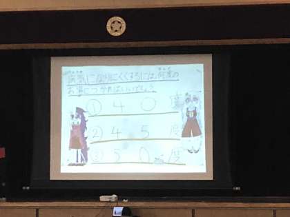 2月8日の児童集会は、保健委員会の発表でした。保健委員会の活動の紹介や健康に関するクイズを行いました。