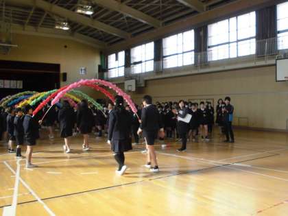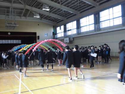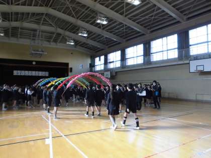 3月1日(金)卒業おめでとう集会がありました。6年生が入場している様子です。