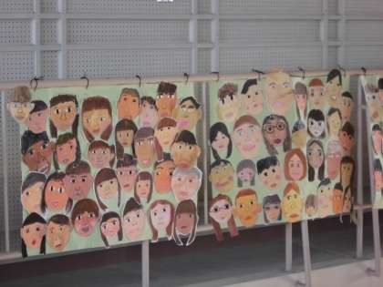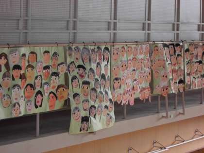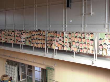 講堂には、在校生の顔が掲示してあります。6年生に向けての笑顔です。