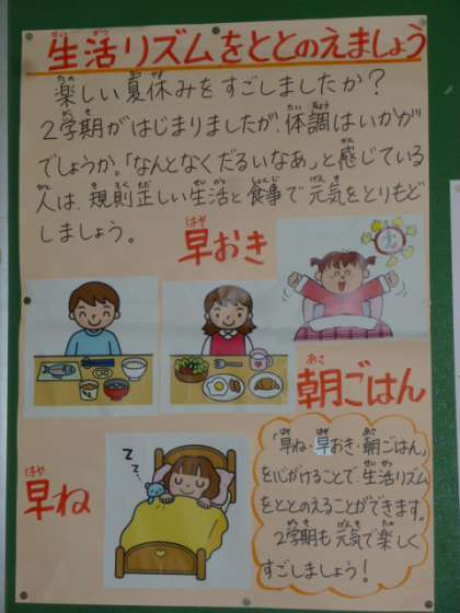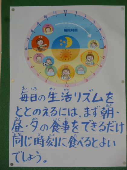 「生活のリズムを整えましょう」というテーマで掲示されています。