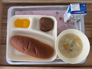 昨日から給食が始まっています。
