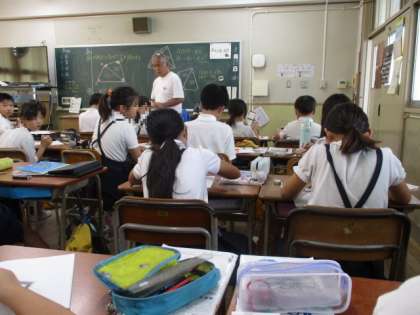三角形の3つの角の大きさを使って四角形の4つの角の大きさについて考えています。