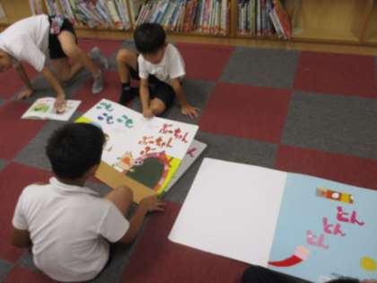 図書室で、それぞれ好きな本を選んで読んでいます。
