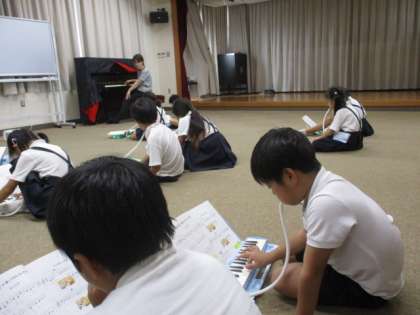 けんばんハーモニカで演奏しています。