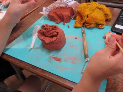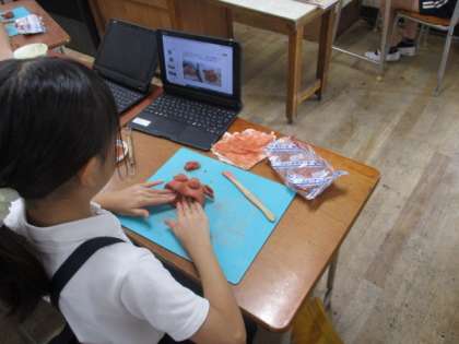 各自、動画を参考にオリジナルのシーサーづくりをしてます。