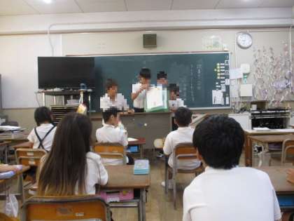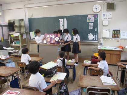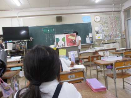 図書委員会の児童が、1、2年生の教室で絵本の読み聞かせをしています。