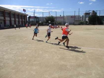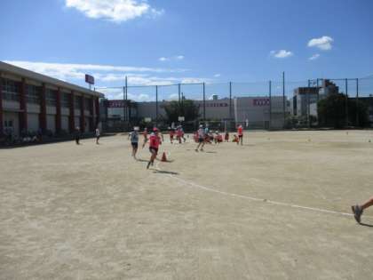 今日は、比較的涼しく?久しぶりに運動場で全力で走っています。