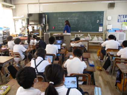 カブトムシ、バッタなどの育ち方を映像で学習しています。