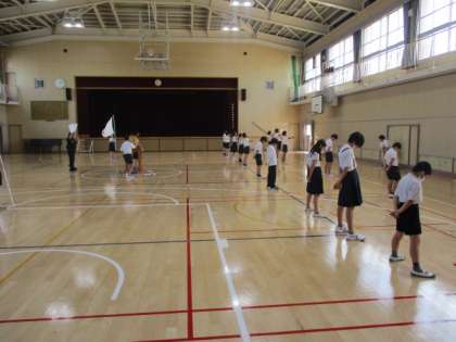 応援団の児童が休み時間に練習をしています。