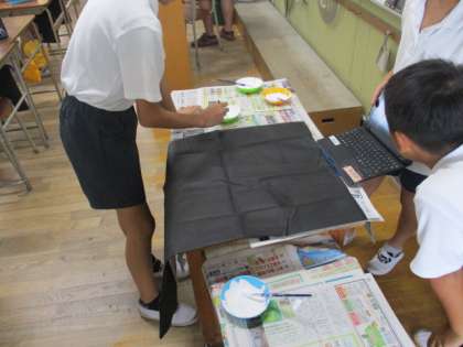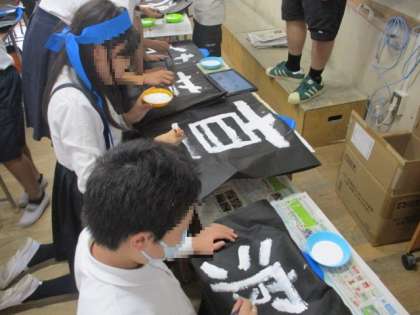 運動会で羽織る衣装に、自分の好きな漢字を一字選んでかいています。