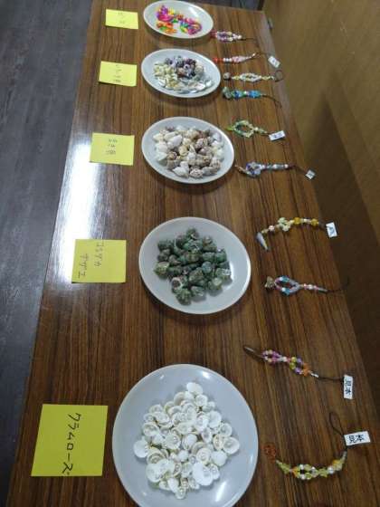 海ほうずきに着きました。貝などを使ったストラップを作ります。