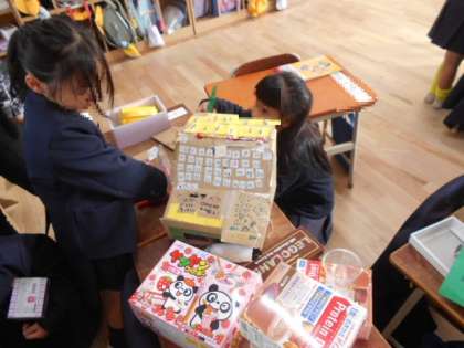 グループで歌の発表です。元気よくおどりながら歌っています。