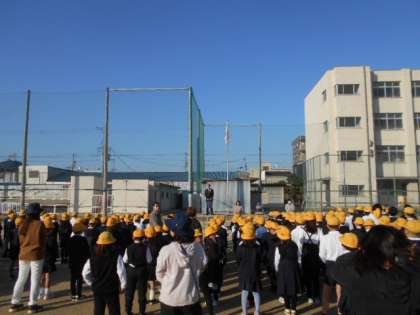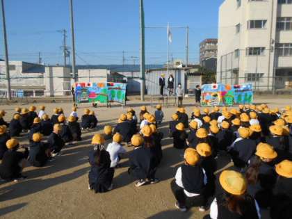 先日、みなさんから応募した、「大阪といえば」をもとに旗に絵を描きました。完成したので披露します。1つは、加美北小学校に、もう1つはソゲリ小学校に送りたいと思います。