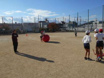 コロナ禍で経験できなかった運動会種目をと、「大玉ころがし」に挑戦。