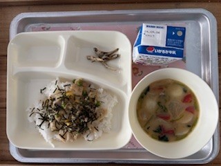 今日の給食は、正月の行事献立でした。ごまめや雑煮がでました。