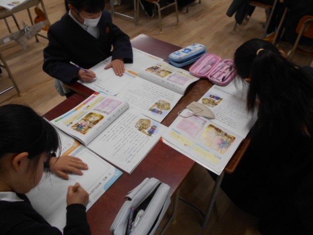 手紙を読む、くまさんの気持ちを考え、交流しています。